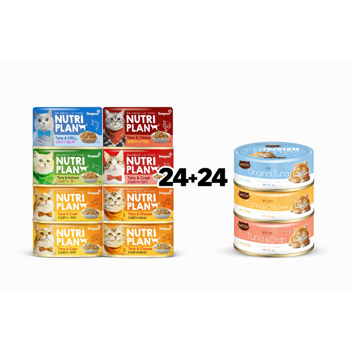 뉴트리플랜 캣캔 나 고양이 캔이야, 48개, 245g, 뉴트리플랜 흰살참치와 연어나고양이캔이야 참치게살